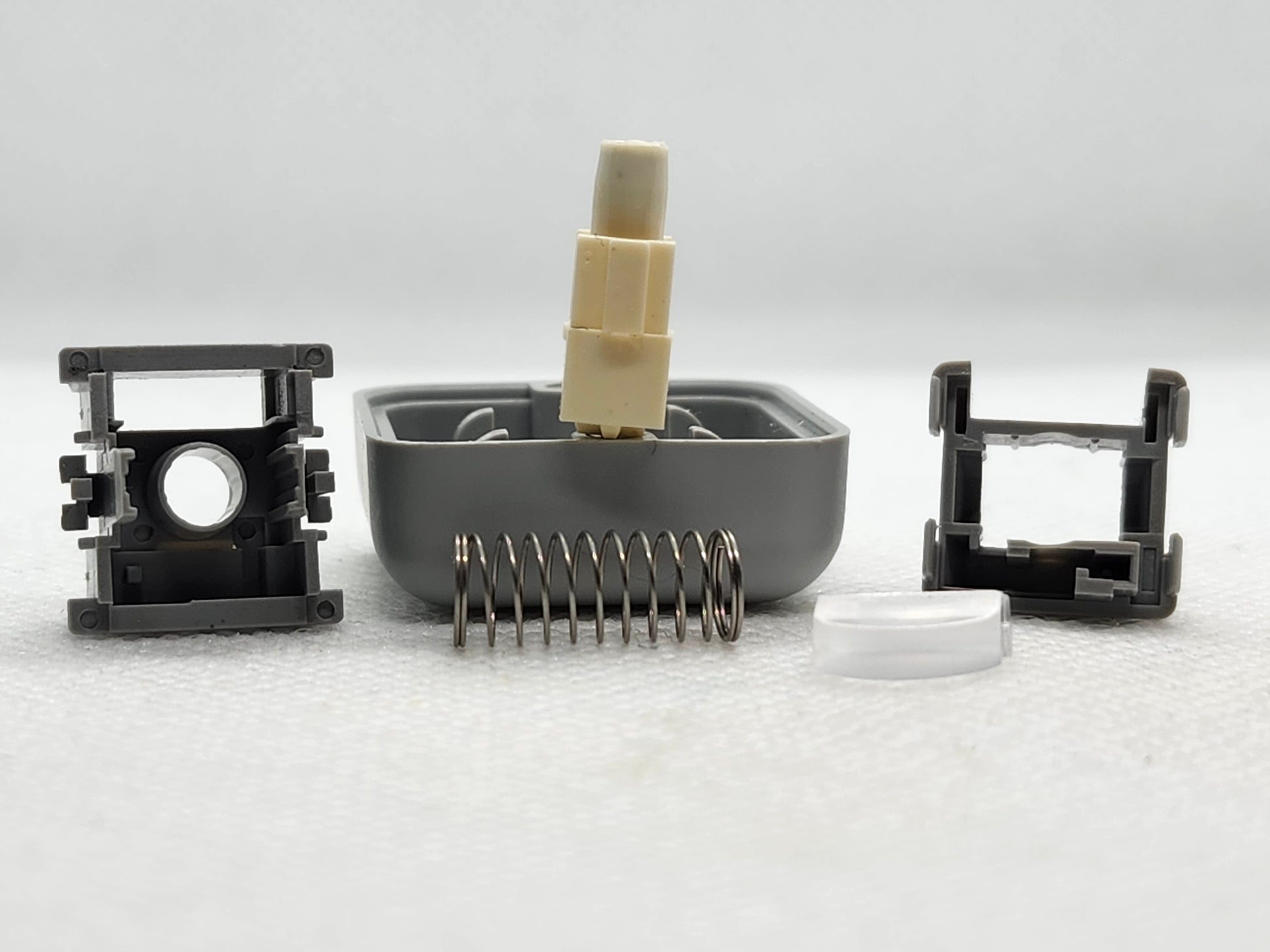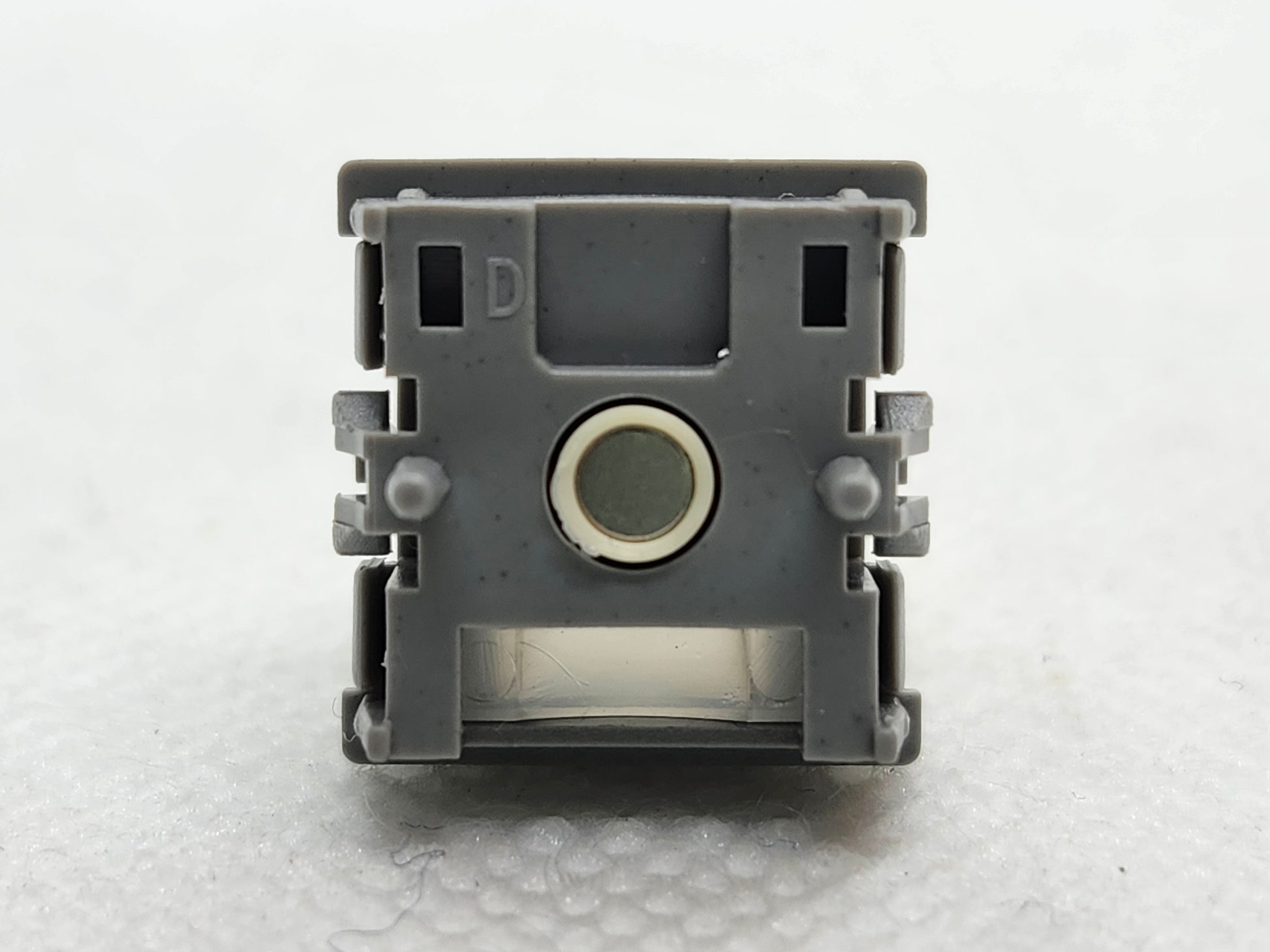 These don't have a name, they don't have specs, the seller didn't even remember where they got them from (which I doubt because they must be pretty new but whatever). This is a magical tactile magnetic switch that I physically do not understand how it's tactile. It's a stem with a magnet, a spring, and a bottom housing with a hole in it. That's it. Also, annoyingly for pictures, the stem is so bottom heavy (top heavy in pics) that I couldn't get it to stand up until I balanced it on a switchmallow which I don't know if that's because it is flatter than my backdrop, or beause of the magnet in it.