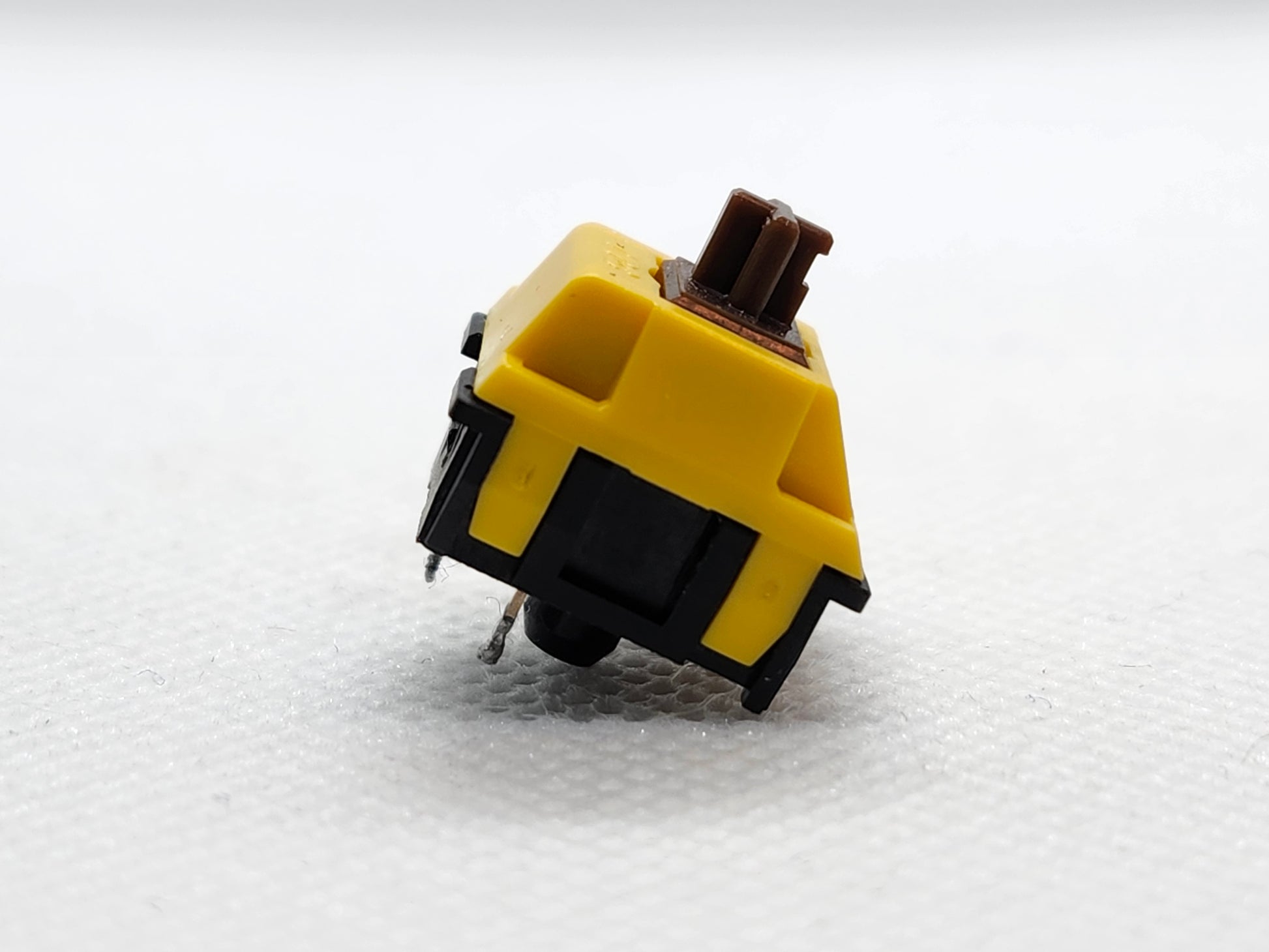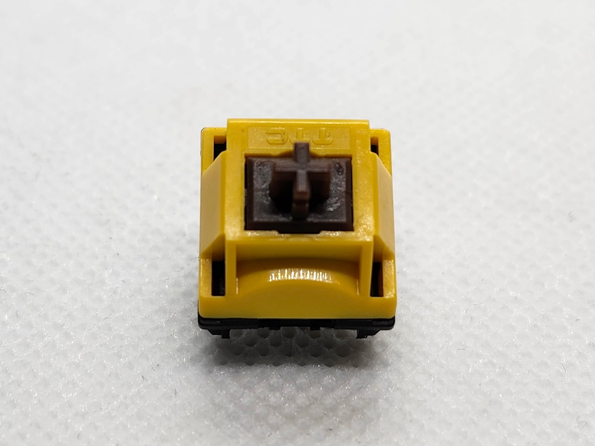 Coming to you from the Logitech Pop Keyboard series, this black and yellow switch is an exclusive colorway of TTC Browns. Desoldered by our very own imlr/switch.riiport from SwitchOddities West.