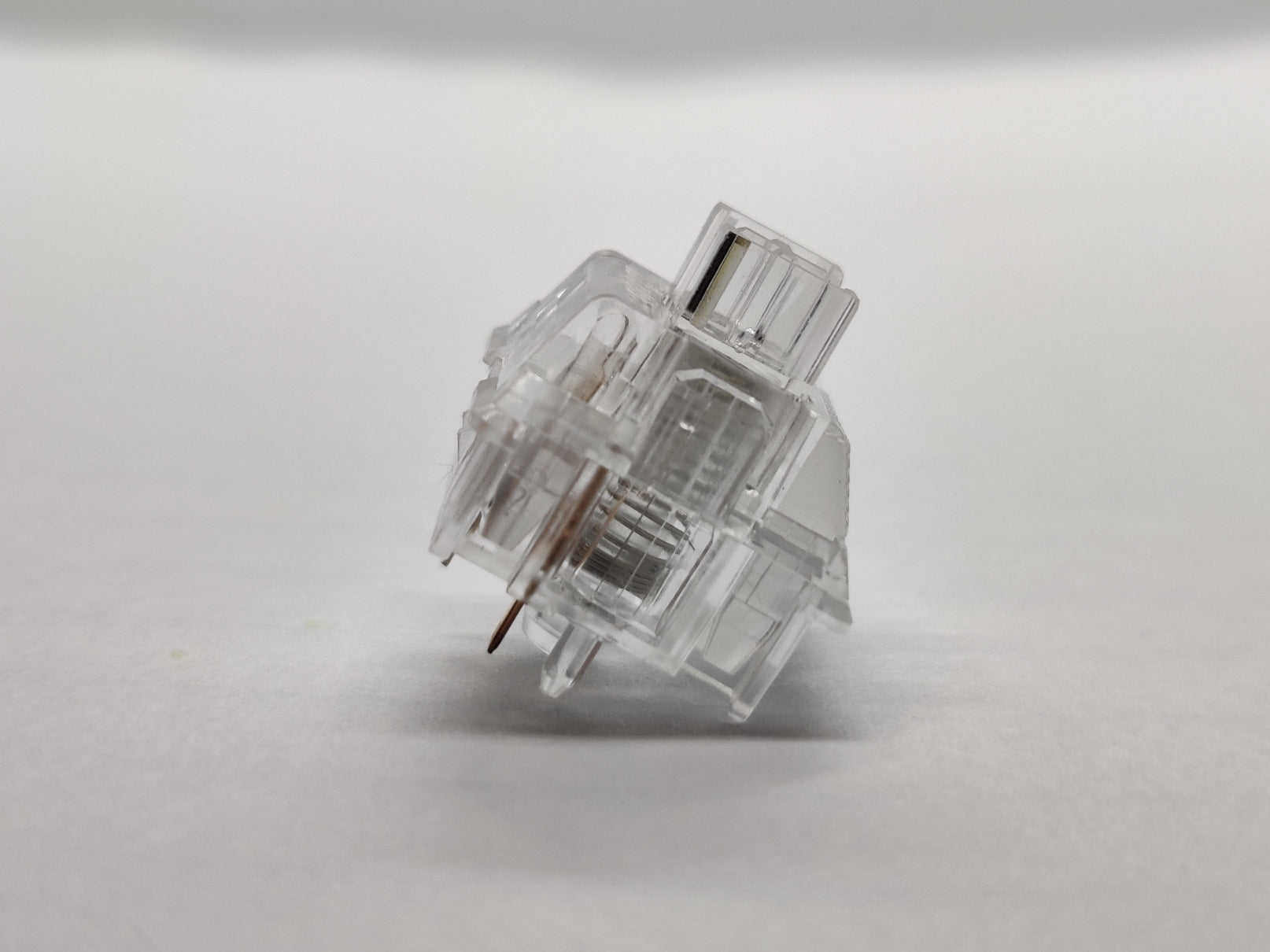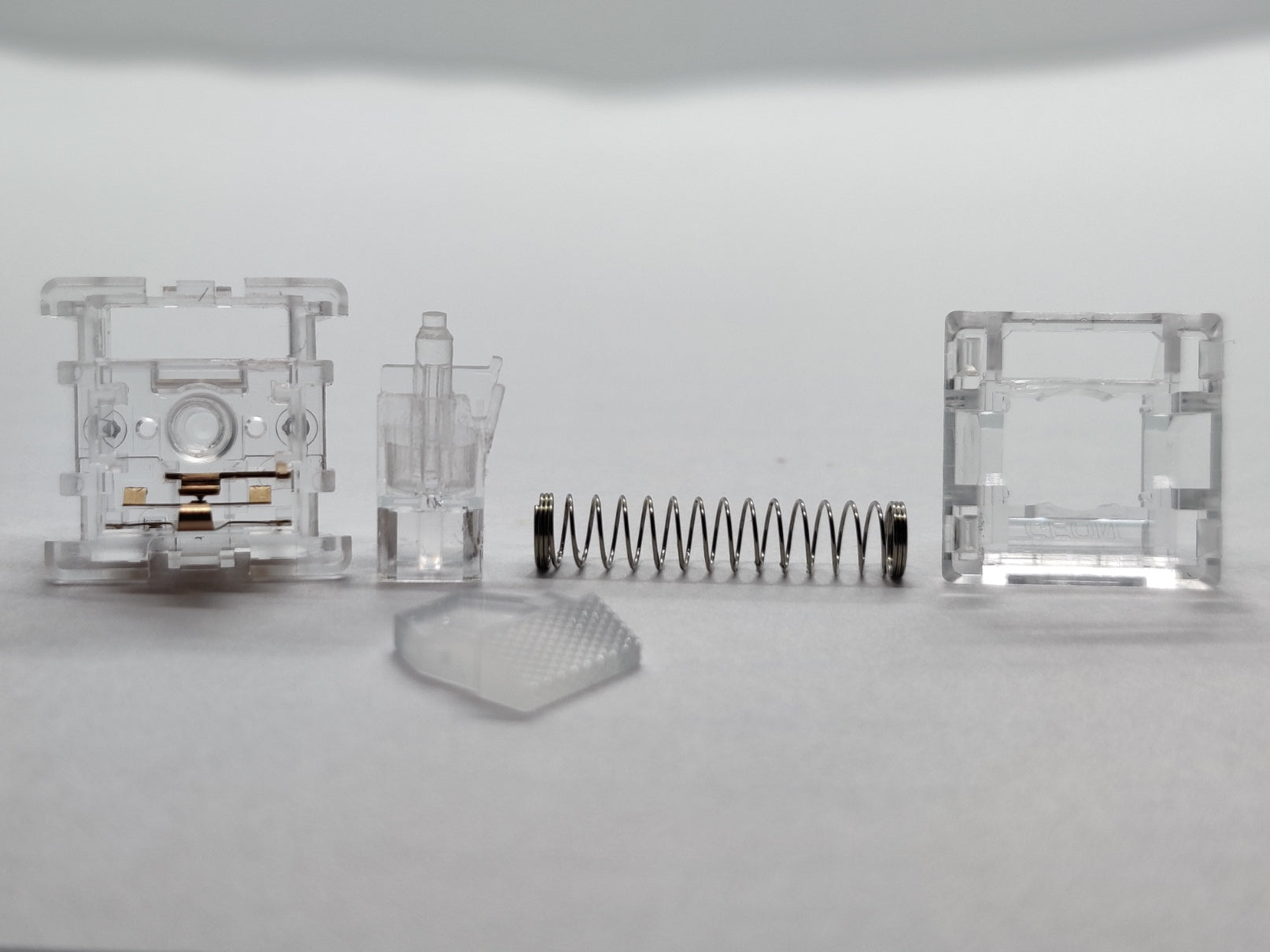 I didn't realize this until I was writing these descriptions, but the lubed and dry versions of these clear switches are two physically different switches. The dry version has full travel, and the lubed one is reduced.