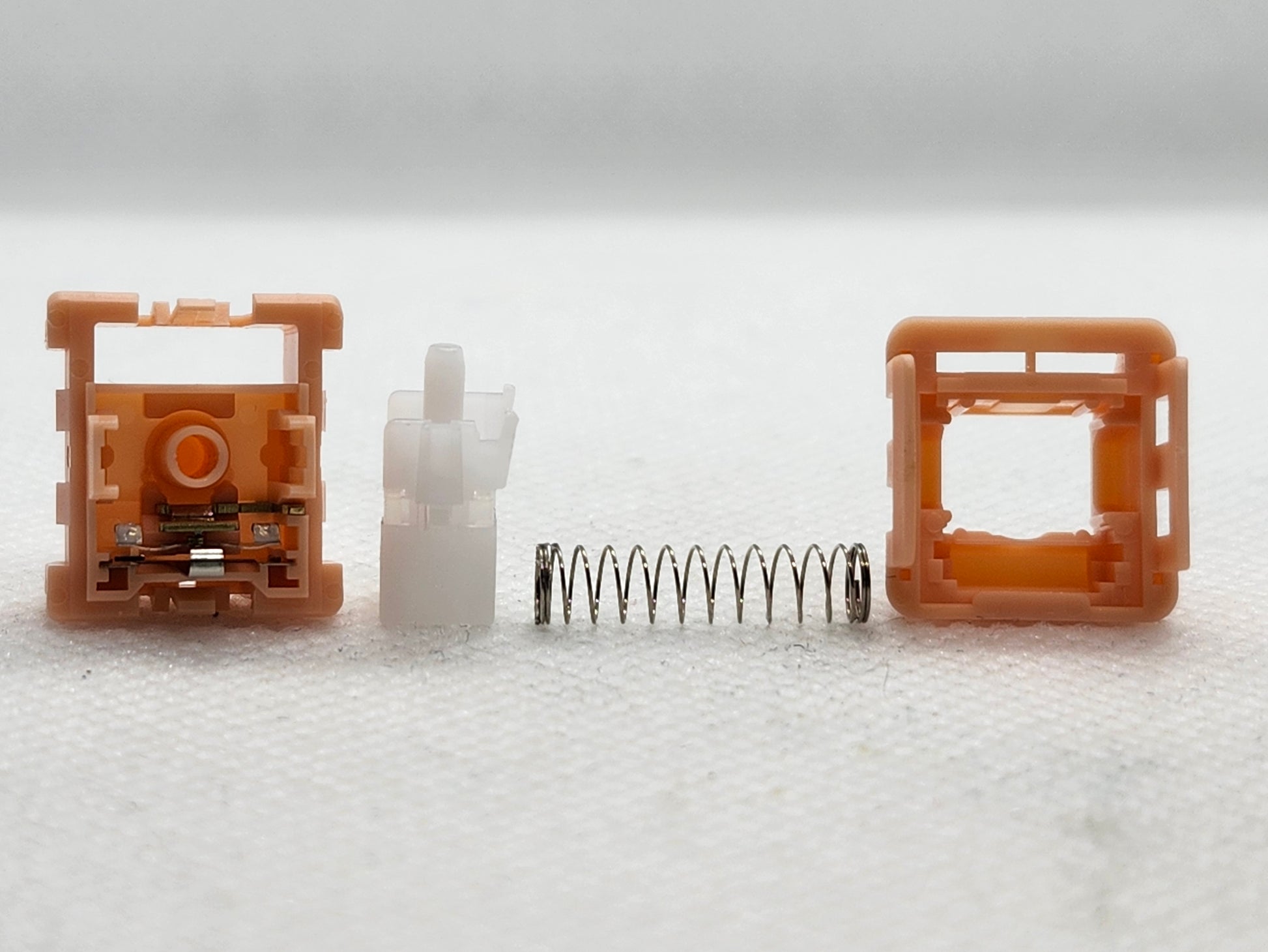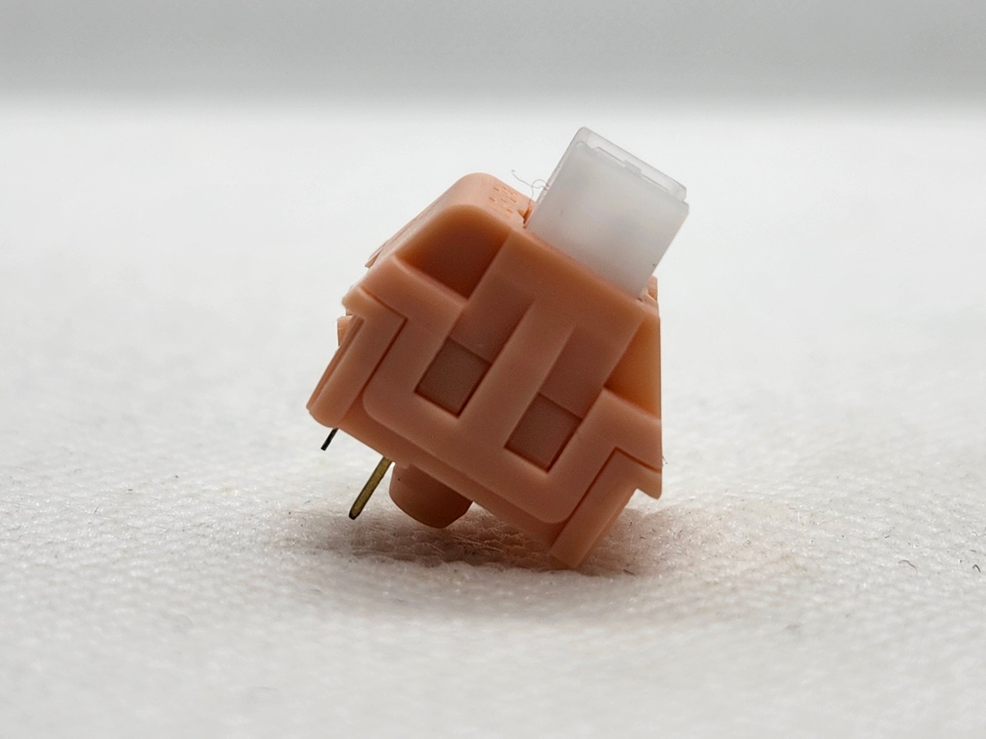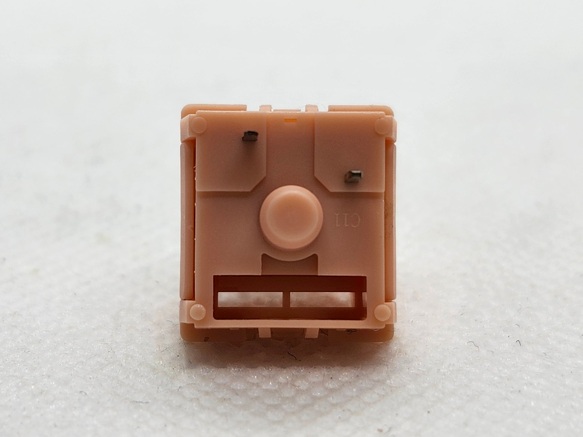 A brand new style of silent switch, with the only silicone being present between the cruciform and body of the switch stem, it silences the top-out on the rails similar to TTC, but the bottom-out is silenced when this silicone hits the top of the pole well walls. This is made by LICHICX, who seems to be related to Varmilo or their molds in some way.