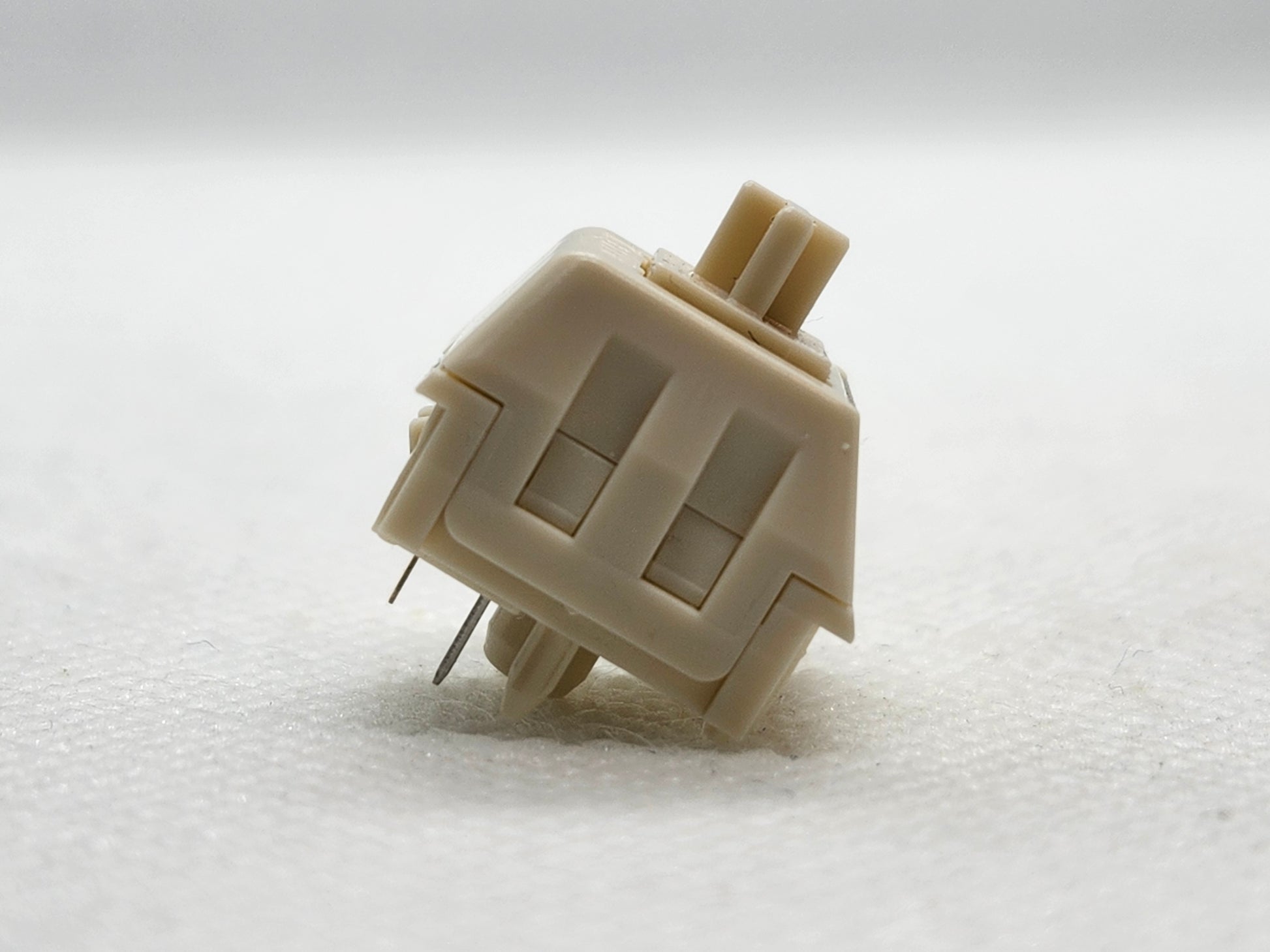 A non-box Box switch? Impossible! Well, yeah, it actually is because the stem has nothing to do with the definition of a Box switch, it was always about the internal protection of the contacts. But now we have a new, more mx-shaped stem. These have pretty low stem wobble which is nice, and pretty typical of their Box switches.