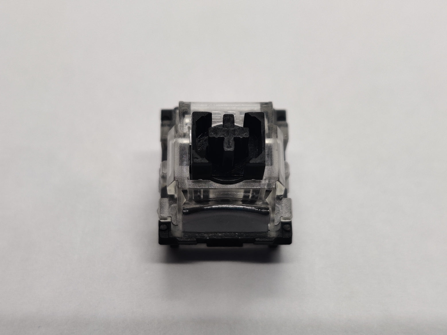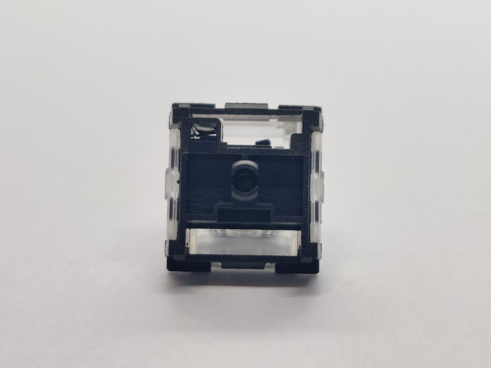 I didn't know LCET made optical switches, and I feel perfectly okay with that since this seems like it was some weird spare parts experiment. Out of 4 optical switches they have both supported and unsupported winglatches, 4 nameplates, 3 stem designs, and 3 LED slots. This Black switch is a clickbar clicky, like 2 more of the set of 4.