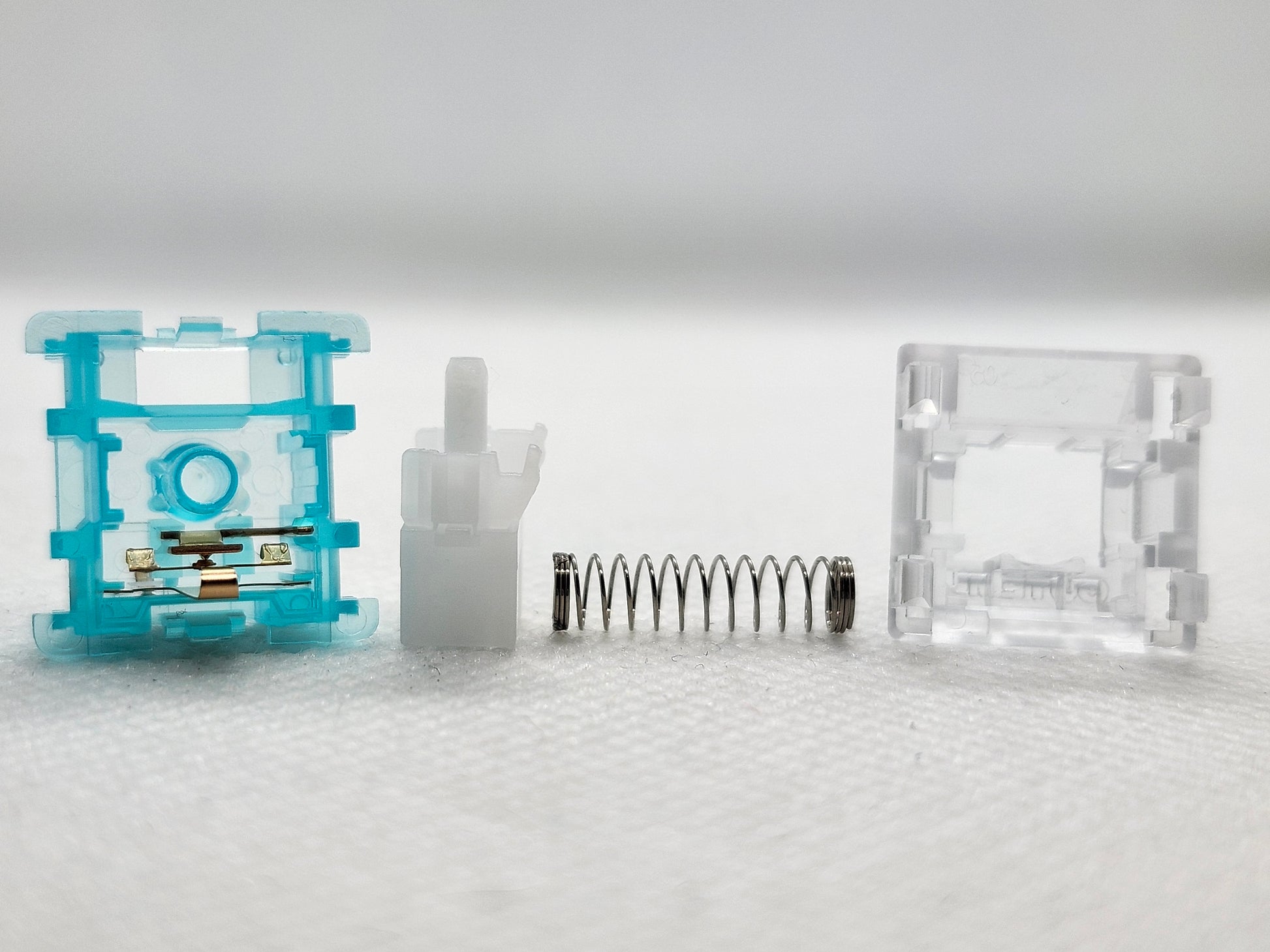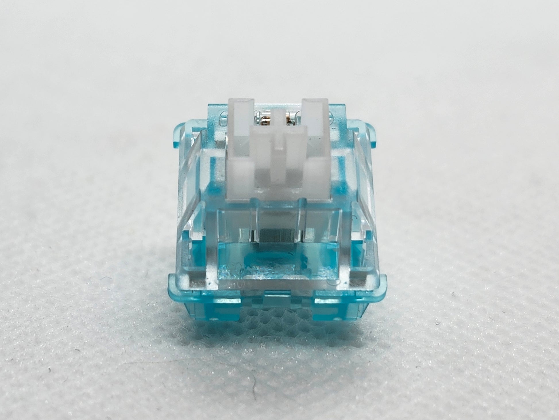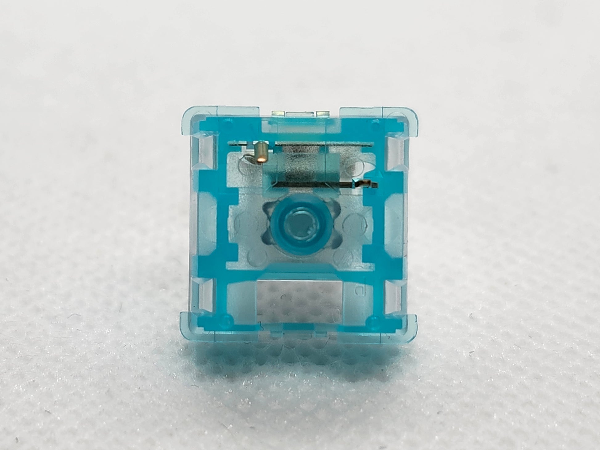 Dustproof clicky switch, no slot Outemu clear tops and a Cherry-style housing instead of winglatch.