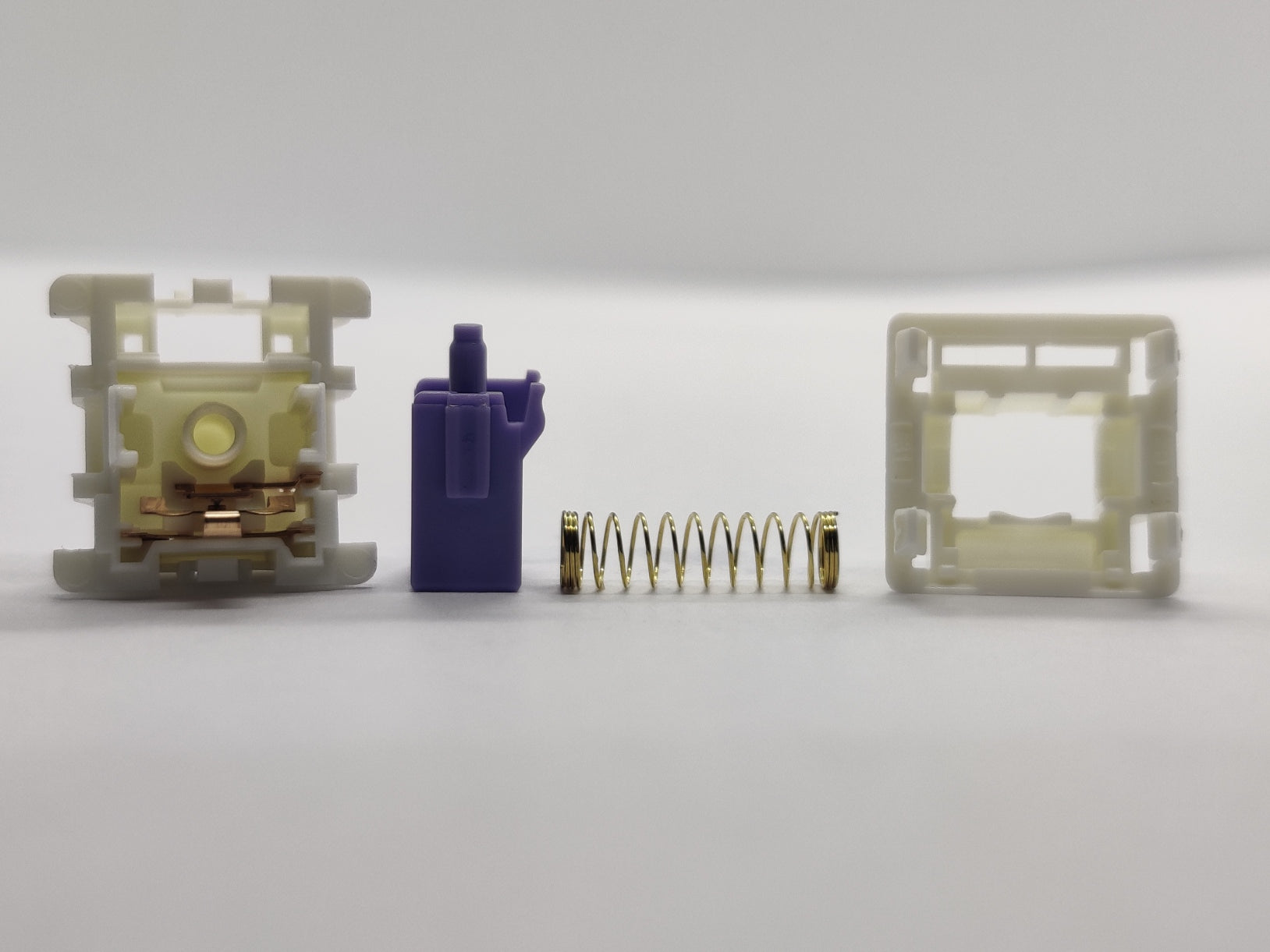 Dustproof SP Star! It took me months to get ahold of these switches, they are 3-pin only and meant for SP Star's prebuilt keyboards, but I got them. There are of course no specs on these, but interestingly enough the heavier versions (grey and purple) of each switch get gold-plated springs.