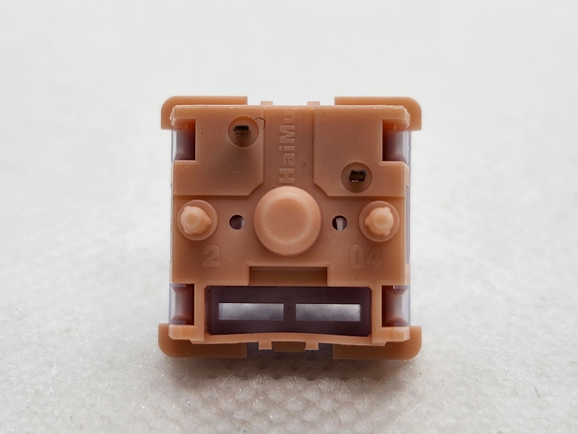 An interesting tactile switch from Haimu, a seeming missing link of a switch using their non-dustproof stems, but with the new housings with holes in the bottom housing.