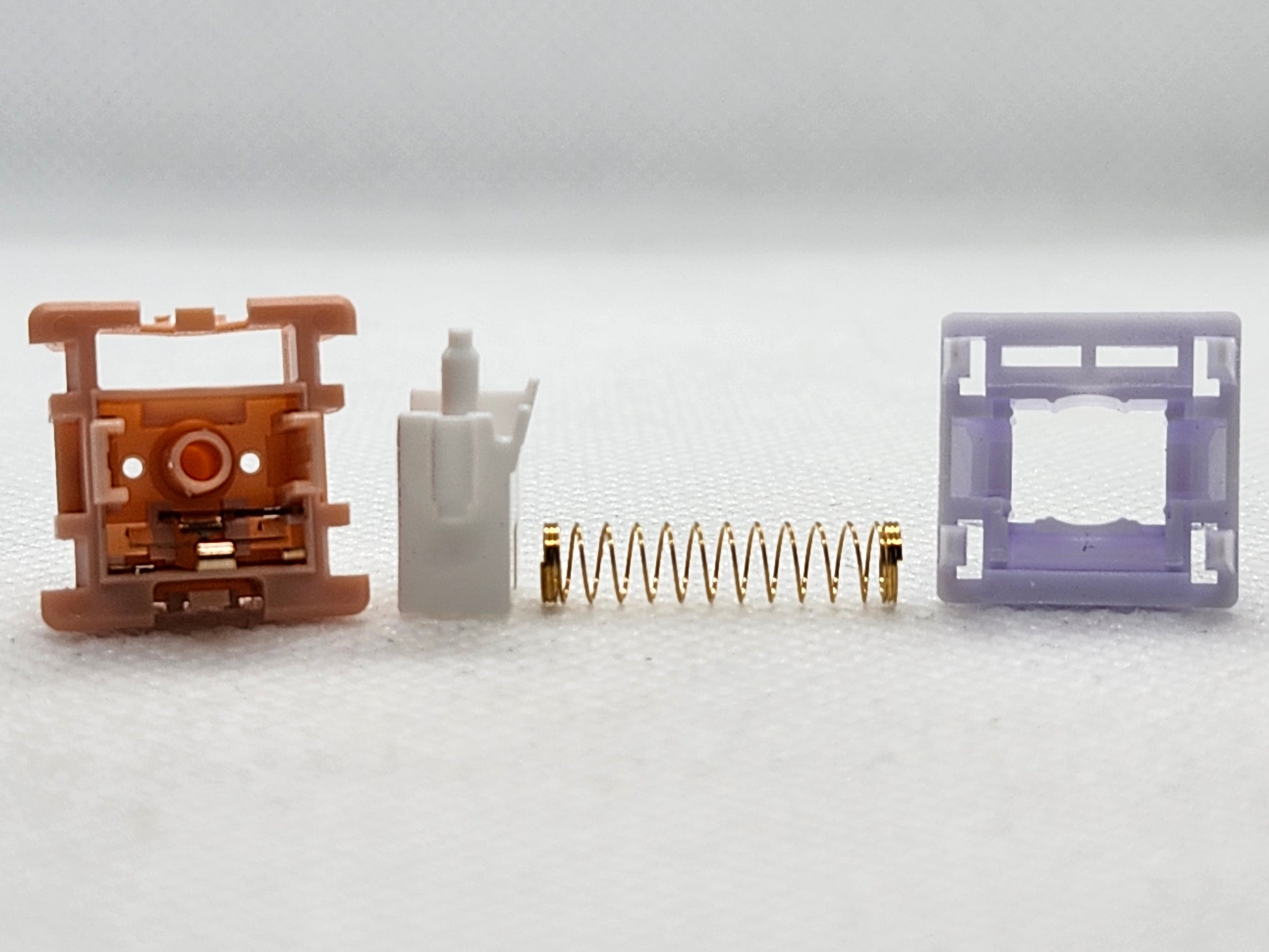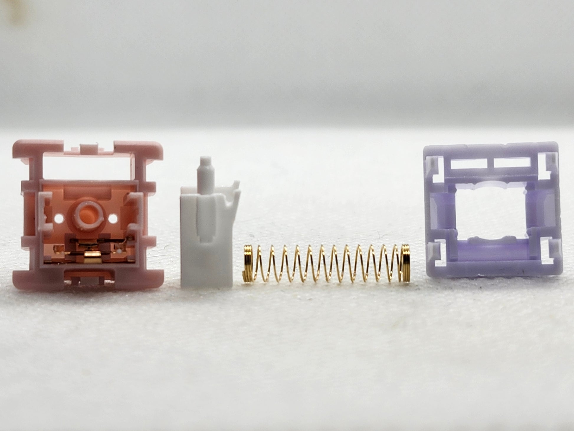 Pretty pastel switches from Haimu, this is the heavier of two spring weights, they also seem to have pretty heavy lube on them from the factory.